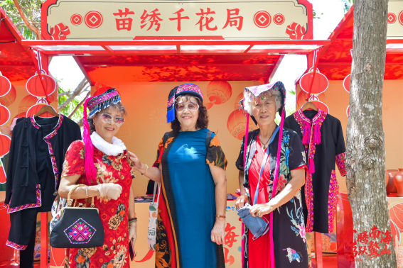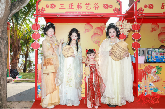 这里是传统文化的活态展示窗口。黎族原始制陶技艺、黎族传统纺染织绣技艺、藤编等非遗项目传承人现场坐镇,展演黎陶、黎锦、苗绣、藤编等制作技艺。游客不仅能近距离观赏匠人指尖流淌的技艺,还能在非遗铝编、非遗陶瓷转转、非遗伞等摊位前体验传统手作的魅力。中药文创、黎锦服饰等特色展位更让古老技艺焕发新生。现场还设有互动问答抽奖,让游客在参与中感受三亚非物质文化遗产的深厚底蕴。