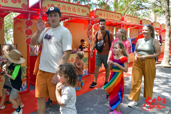 循着香气来到美食小吃区,一场舌尖上的琼崖盛宴在此开启。市集汇集了地道的海南风味与各地名小吃:崖州酸粉、扁豆酱、藤桥排骨、疍家渔货、海南粉、抱罗粉、儋州米烂、三色饭、斑斓小吃等地道琼味香气四溢;锅盔肉夹馍、内蒙古烤串、台湾大香肠、天津包子等各地美食满足不同口味。还有龙形糖画、棉花糖、冰糖葫芦、雪花酥等传统小吃,让游客在品味传统节日韵味的同时,尽享舌尖上的海南。